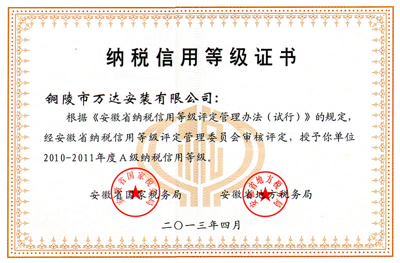 纳税信用等级证书