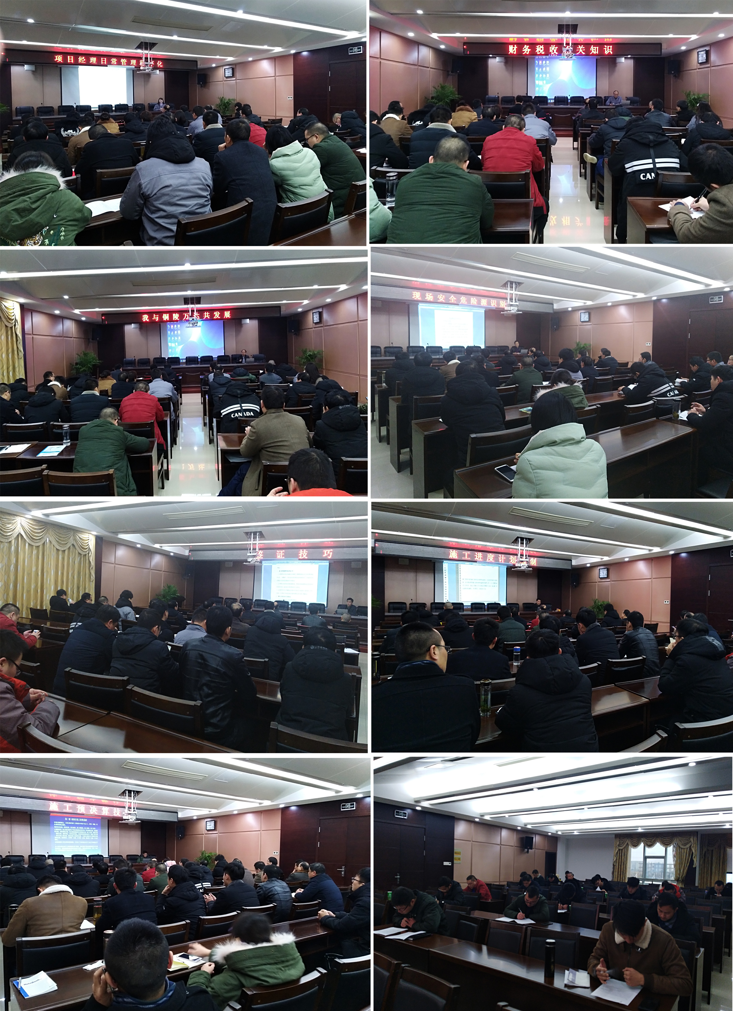 本次培训以教育、提高为宗旨,以学习为主,考试为辅。学习分为两大部分,第一部分公司高管向员工传授专业知识和企业文化,包括《项目经理日常管理程序化》、《财务税收相关知识》、《我与铜陵万达共发展》;第二部分以现场管理与技术知识等内容为主,公司技术专家针对公司现场管理中经常遇到的问题及难点重点,精心准备了《现场安全危险源识别》、《签证技巧》、《施工预决算技巧》、《施工进度计划编制》课程进行深入剖析,精准施策;最后针对学习的知识点对所有技术人员进行考试考核。