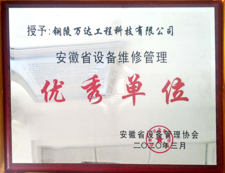 热烈祝贺铜陵万达工程科技有限公司获得第十一届“安徽省设备维修管理优秀单位”称号。