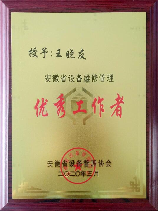 热烈祝贺公司总经理王晓友获得“安徽省设备维修管理优秀工作者”称号。